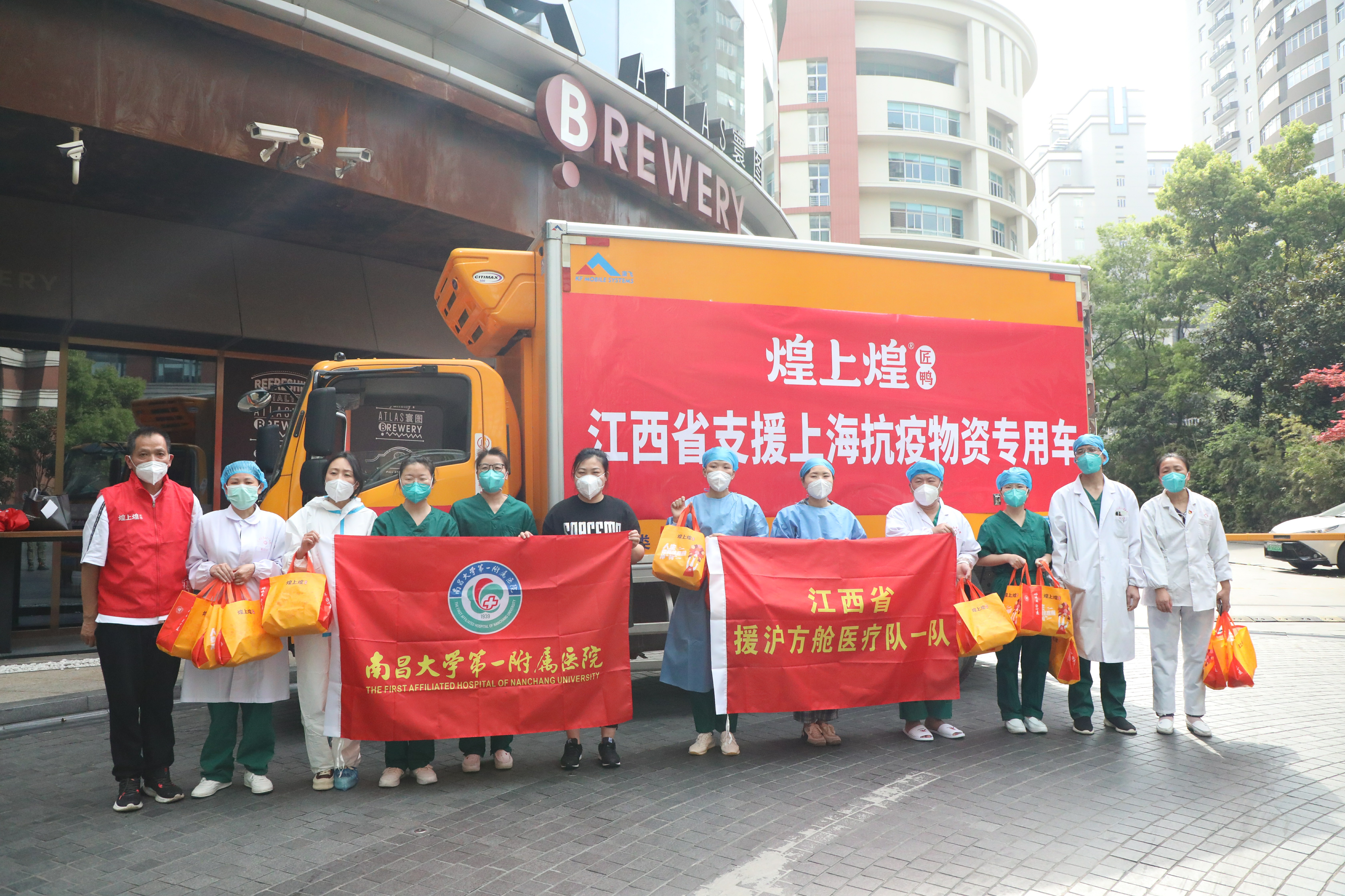 在江西省疫情防控應急指揮部物資保障組和江西援滬疫情防控前方指揮部的指導下,這批由煌上煌集團捐贈、組織調運的愛心物資,將星夜兼程送抵上海,給江西援滬醫療隊的1021名醫護人員送去家鄉最新鮮的味道。